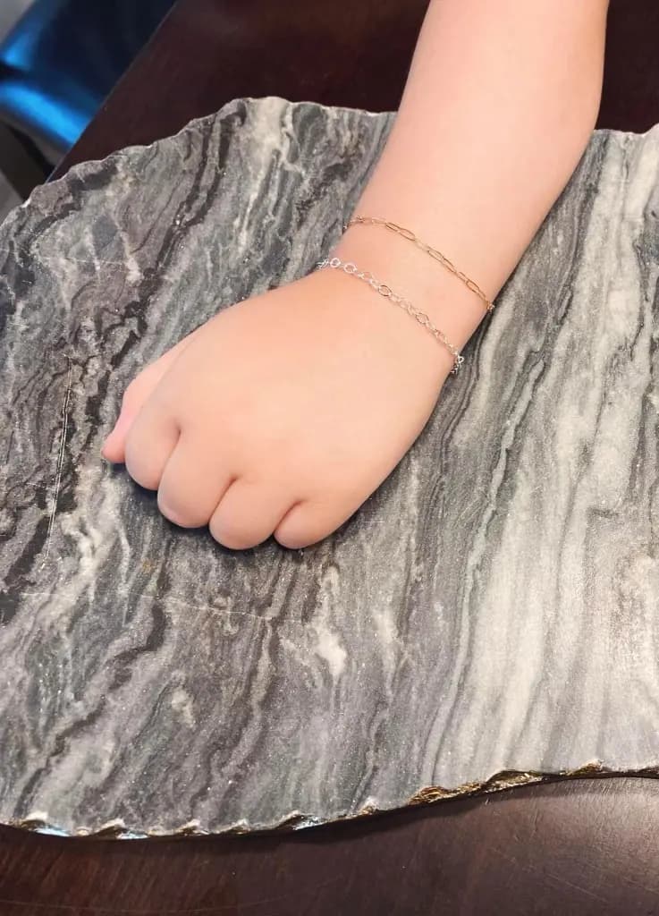 Permanent jewelry is a custom-fit chain for your wrist, neck, or ankle. Instead of a clasp, we use a jump ring to connect and weld the two ends of the chain, turning it into a "permanent" piece of jewelry. It's an easy and painless process. Please note that permanent does not equal invincible. While it is suitable for everyday wear, fine jewelry must be cared for.